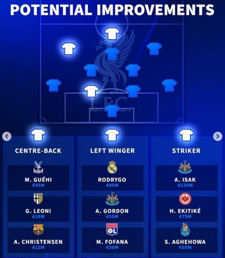 直播吧7月21日讯 已经完成了多笔重磅引援的利物浦仍未停下脚步,《转会市场》也列出了红军今夏继续补强的三个位置及其候选: